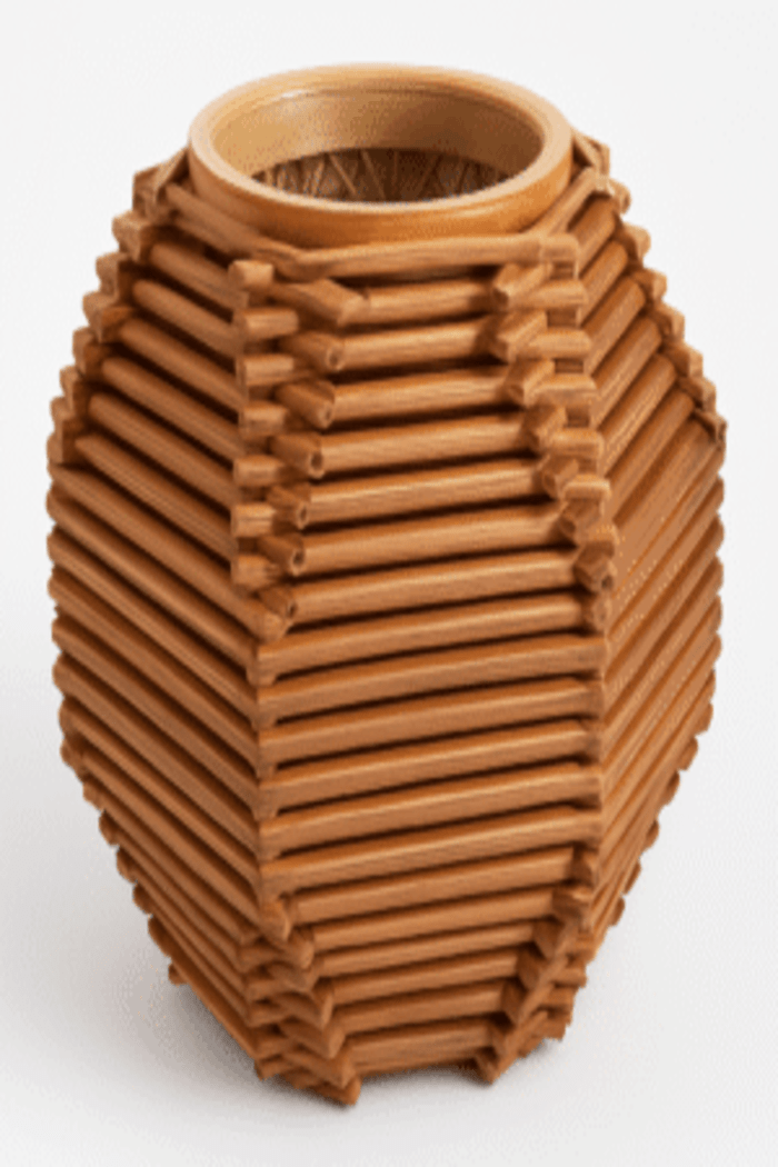 Bring geometric brilliance into your home with this handcrafted wooden vase. Its bold stacked design creates a striking sculptural look, making it the perfect blend of décor and function that customers will love.