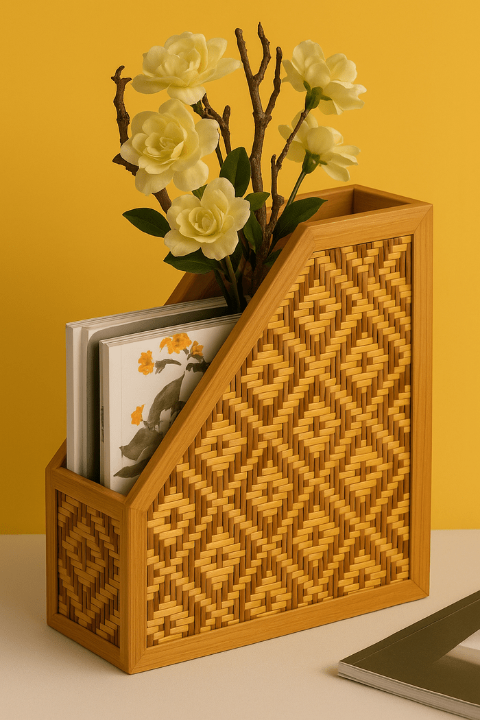 Elevate your desktop aesthetic with the WovenNest File Holder! This stunning piece seamlessly blends natural elegance with practical organization. It’s more than just a holder; it’s a handcrafted statement that brings warmth, texture, and a touch of artisanal chic to your office or home, making organization a joy, not a chore.